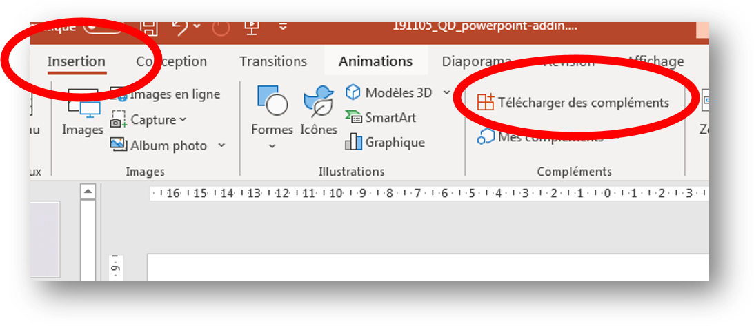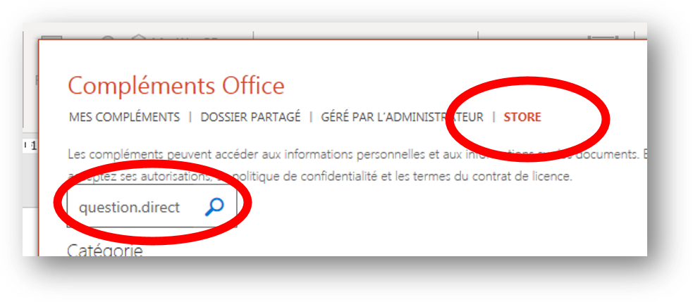Pour diffuser via PowerPoint, il vous suffit de télécharger le complément "question.direct" sur Microsoft AppSource dans votre présentation.