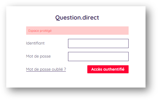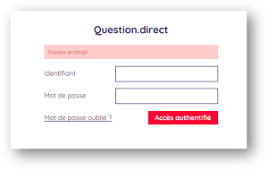 Utilisez le code de diffusion ou vos identifiants / mot de passe pour vous connecter à votre compte question.direct