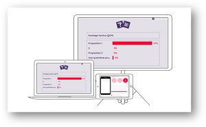 • uniquement en phase de présentation des résultats pour les sondages personnalisés (vous pouvez dans ce cas présenter votre sondage librement et exploiter les fonctions graphiques de PowerPoint)